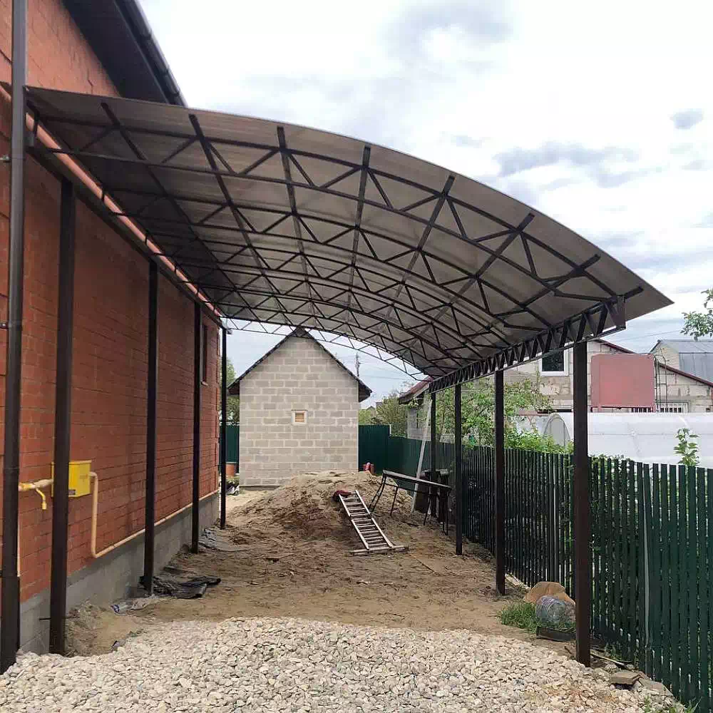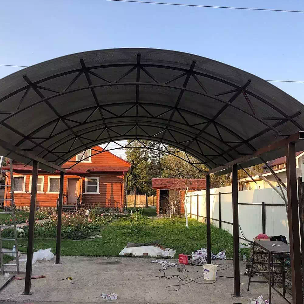 За день на даче изготовили арочный навес 5 на 7 с покрытием поликарбоната. Привезли уже готовые крашенные фермы и весь остальной материал. Все за собой убрали и увезли мусор. Молодцы!